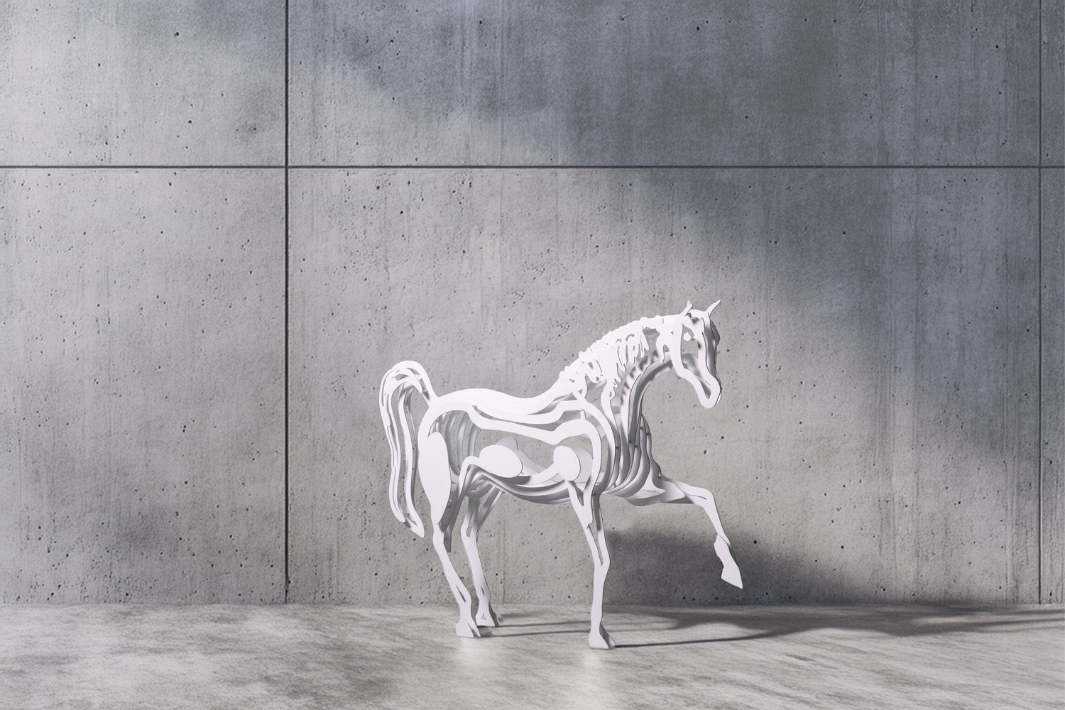 Our Collectiondelves into the interplay between form and perception. This steel sculpture, with its precisely cut and layered slices, invites viewers to explore new planes of reality. The durable, high-quality paint enhances its resilience and aesthetic appeal, making it suitable for both indoor and outdoor display.