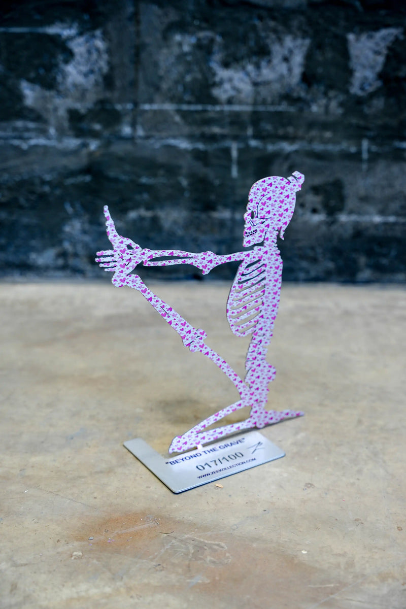 Crafted from premium, thin-sheet steel, each sculpture in this captivating series features a stylized skeleton, brought to life with unique, thought-provoking patterns. These intricate designs, born from the artist's contemplation of the unknown, offer a tangible representation of our curiosity about the afterlife.