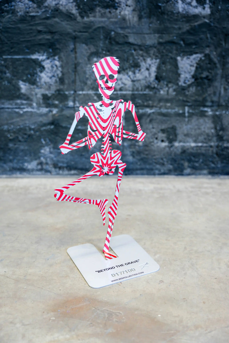 Crafted from premium, thin-sheet steel, each sculpture in this captivating series features a stylized skeleton, brought to life with unique, thought-provoking patterns. These intricate designs, born from the artist's contemplation of the unknown, offer a tangible representation of our curiosity about the afterlife.