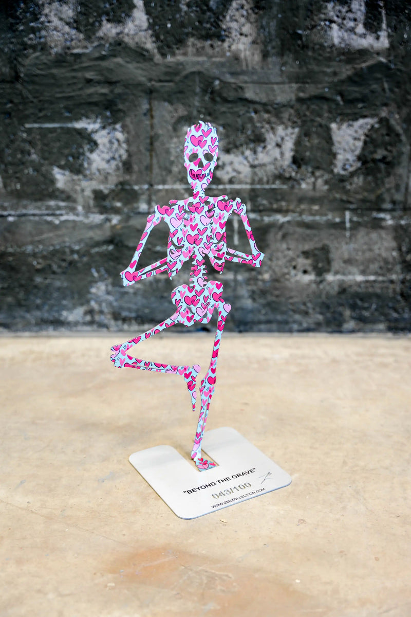 Crafted from premium, thin-sheet steel, each sculpture in this captivating series features a stylized skeleton, brought to life with unique, thought-provoking patterns. These intricate designs, born from the artist's contemplation of the unknown, offer a tangible representation of our curiosity about the afterlife.