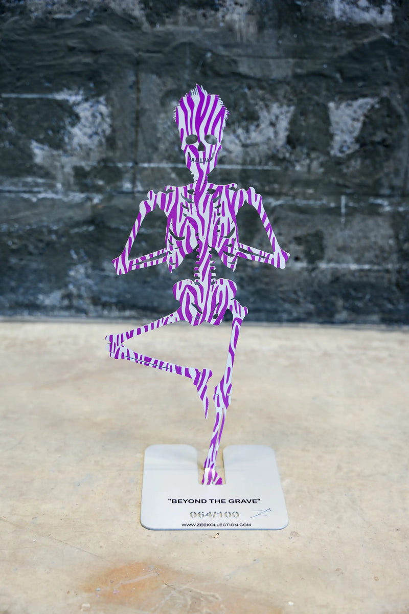 Crafted from premium, thin-sheet steel, each sculpture in this captivating series features a stylized skeleton, brought to life with unique, thought-provoking patterns. These intricate designs, born from the artist's contemplation of the unknown, offer a tangible representation of our curiosity about the afterlife.
