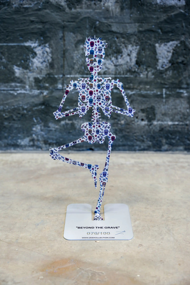 Crafted from premium, thin-sheet steel, each sculpture in this captivating series features a stylized skeleton, brought to life with unique, thought-provoking patterns. These intricate designs, born from the artist's contemplation of the unknown, offer a tangible representation of our curiosity about the afterlife.