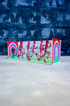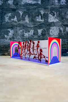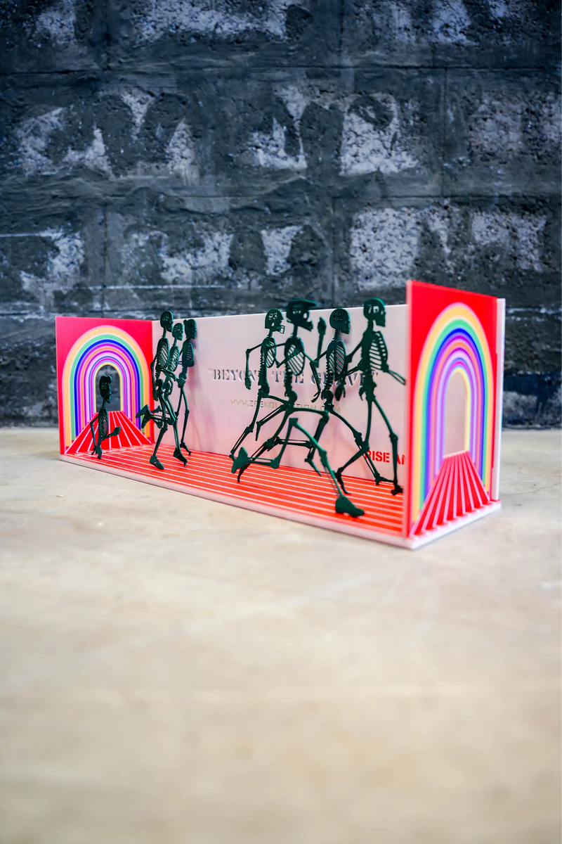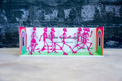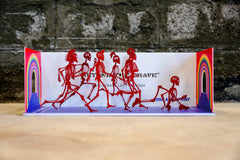 Crafted from premium, thin-sheet steel, each sculpture in this captivating series features a stylized skeleton, brought to life with unique, thought-provoking patterns. These intricate designs, born from the artist's contemplation of the unknown, offer a tangible representation of our curiosity about the afterlife.