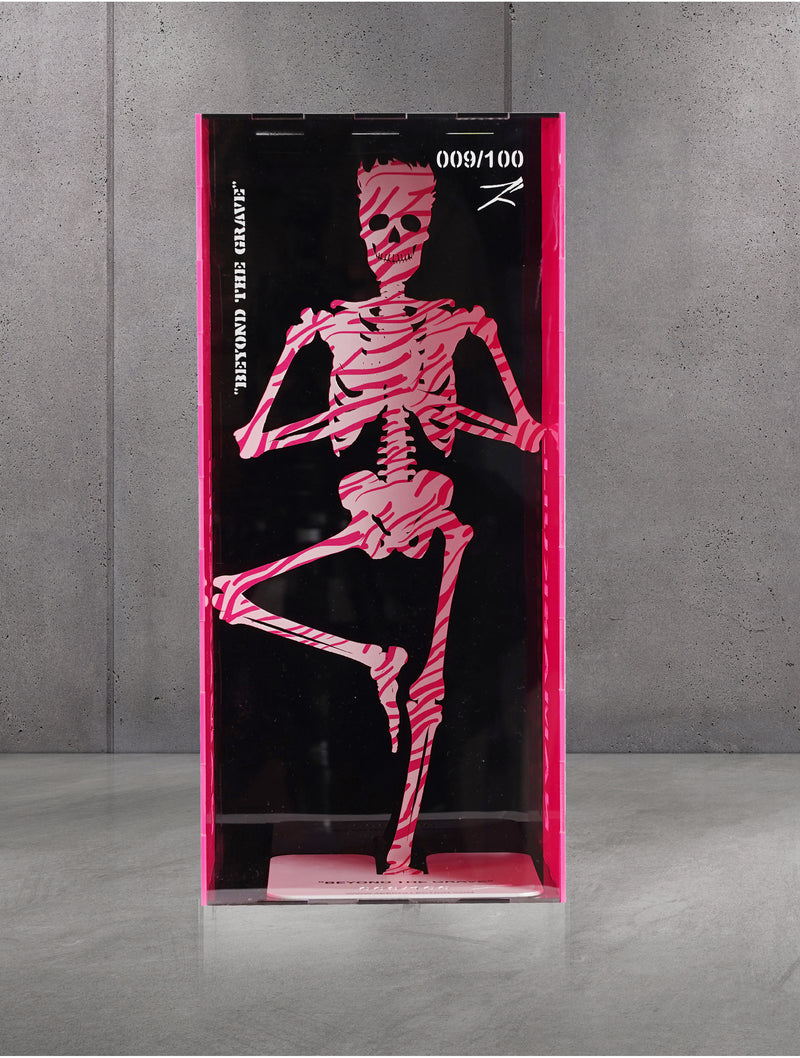 Crafted from premium, thin-sheet steel, each sculpture in this captivating series features a stylized skeleton, brought to life with unique, thought-provoking patterns. These intricate designs, born from the artist's contemplation of the unknown, offer a tangible representation of our curiosity about the afterlife.
