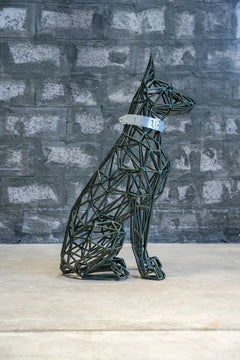 Seated in poised vigilance, Nitro the Doberman exudes a quiet yet unmistakable strength. Crafted in steel, his form is both powerful and refined, capturing the raw intensity and loyalty of a true guardian even in his repose. Though sitting, Nitro radiates an aura of readiness—ears pricked, gaze unwavering, every muscle taut with contained energy. Like the name suggests, he’s a force to be reckoned with, a protector in stillness, embodying the fierce loyalty and sharp intelligence of his breed.